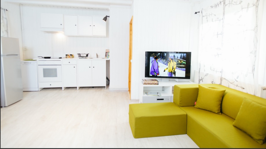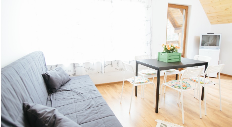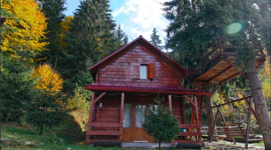 Cabana de pe pârtie are 8 locuri. Aici pot fi cazați, în cele două dormitoare și un living, 6 adulți și 2 copii, maximum.