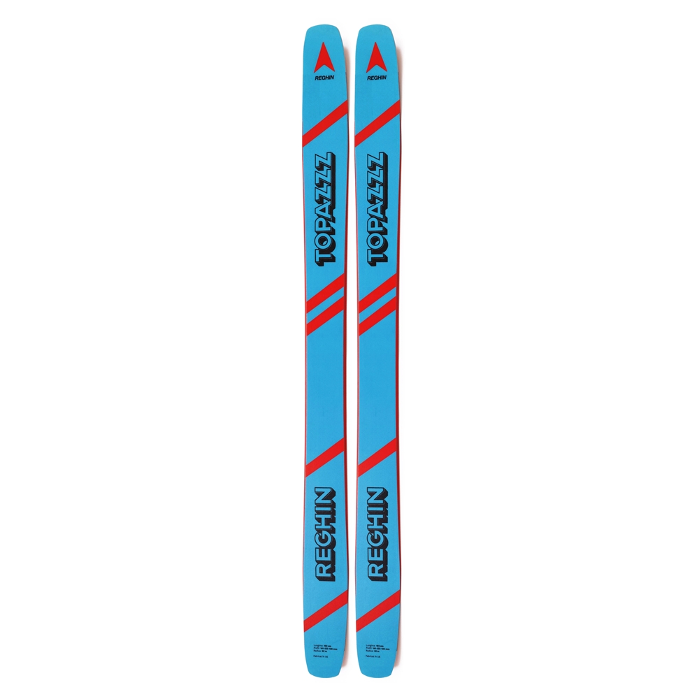 Topazzz este schiul pe care l-am văzut la Oslea Hiride, un schi frumos cu un design curat care aduce un omagiu predecesorului său și, din câte am înțeles de la specialiștii off-piste care s-au dat cu el, este un schi de-a dreptul impresionant din punct de vedere al comportamentului și performanțelor în afara pârtiei. Deschidem din nou site-ul producătorului și citim: “Topazzz e cel mai lat și cel mai lung model din gama Schiuri Reghin. Acoperă o plajă de la backcountry freestyle pînă la big mountain, fiind potrivit și pentru misiuni mai lungi, datorită greutății reduse. Topazzz e un schi polivalent pentru acei schiori care caută un schi lat, jucăuș și agil. Schiul are un rocker clasic în față (25%), ideal pentru zăpadă afînată, camber clasic la mijloc (65%), pentru stabilitate pe zăpadă tare și o coadă progressive rocker (10%), pentru a ușura inițierea virajului fără a lăsa schiul să fugă de sub schior. Vîrful acestui schi are o rigiditate joasă spre medie, coada o rigiditate medie, iar partea din mijloc (camberul) are o rigiditate ridicată. Topazzz are o structură sandwich clasică, cu miez din lemn de Pawlonia, fibră de sticlă, benzi de cauciuc anti-vibrație și sidewall-uri ABS.”
