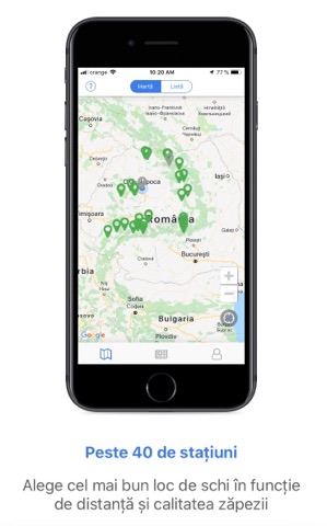 Pe lângă harta interactivă, aplicația conține și o lista alfabetică a domeniilor de schi și pârtiilor din România care au asociat, încă de la afișare, un rating al calității schiului în acel moment, în funcție de voturile utilizatorilor.