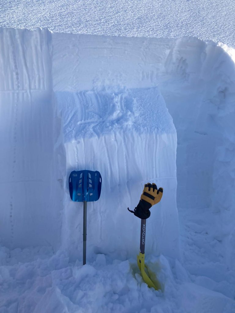 Ziua de sâmbătă începe cu un cer albastru perfect şi un ger pe măsură. Încercăm să batem urme cu schiurile de tură. Coroborat cu frigul tăios ce ȋngheaţă zăpada, progresul este mai bun ca ieri. Urcăm la lacul Pietrele, unde ieşim din umbră şi trecem într-o clipă de la -15°C la temperaturi aproape pozitive. Admirăm peisajul hibernal şi marea de nori de sub noi. Facem un profil de avalanşă, iar rezultatul pare să fie ȋncurajator. Stratul superior acceptă să plece abia după 9-10 lovituri puternice executate din cot cu lopata.