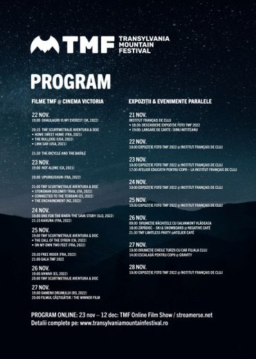 La Cluj a început a cincea ediție a Transylvania Mountain Festival (TMF), care va reuni expoziții de fotografie montană, proiecții…
