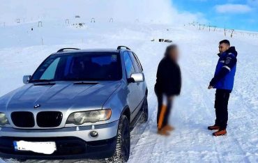 Cu mașina pe pârtie la Muntele Mic. Doi bărbați au fost amendați de jandarmi