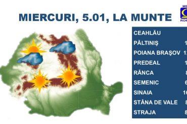 Meteorologii estimează pentru miercuri, 5 ianuarie, temperaturi de peste 10 grade Celsius în stațiunile montane din țară. Cel mai cald…